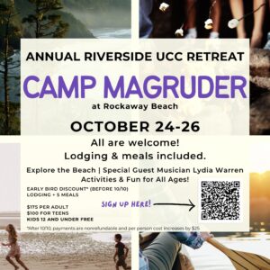 Events for September28th![]() 8:00 am - 5:00 pm UCC Annual Gathering All Day CPC ANNUAL GATHERING 2025![]() 10:30 am - 11:45 am Sunday Worship ServiceEvents for September30th![]() 4:00 pm - 6:00 pm Pop Up Acupuncture Series with Rachel Moore-Beitler, LACRuth Wells Room Events for October1st![]() 2:00 pm - 3:30 pm Riverside Bible StudyParkhurst Place ![]() 3:30 pm - 4:30 pm Contemplative Prayer GroupRuth Wells Room ![]() 6:30 pm - 8:00 pm Chancel Choir RehearsalSanctuary ![]() 6:45 pm - 8:00 pm (OWL) | Our Whole Lives | Teen Sexuality CourseRiverside Community Church Events for October2ndNo Events Events for October3rd![]() 4:30 pm - 5:30 pm Interfaith Day of Action for Ceasefire in GazaSalmon Fountain Events for October4thNo Events Events for October8th![]() 9:15 am - 10:15 am Gospel Ensemble with Tim MayerSanctuary 10:30 am - 12:00 pm Adult Education & Spiritual Nurture Board MeetsRuth Wells Room ![]() 2:00 pm - 3:30 pm Riverside Bible StudyParkhurst Place ![]() 3:30 pm - 4:30 pm Contemplative Prayer GroupRuth Wells Room ![]() 6:30 pm - 8:00 pm Chancel Choir RehearsalSanctuary ![]() 6:45 pm - 8:00 pm (OWL) | Our Whole Lives | Teen Sexuality CourseRiverside Community Church Events for October9th![]() 9:15 am - 10:15 am Gospel Ensemble with Tim MayerSanctuary ![]() 5:30 pm - 7:00 pm Circles of Solace | Fall SeriesRuth Wells Room Events for October10th![]() 9:15 am - 10:15 am Gospel Ensemble with Tim MayerSanctuary ![]() 4:30 pm - 5:30 pm Interfaith Day of Action for Ceasefire in GazaSalmon Fountain Events for October11thNo Events Events for October15th![]() 9:15 am - 10:15 am Gospel Ensemble with Tim MayerSanctuary ![]() 2:00 pm - 3:30 pm Riverside Bible StudyParkhurst Place ![]() 3:30 pm - 4:30 pm Contemplative Prayer GroupRuth Wells Room ![]() 6:30 pm - 8:00 pm Chancel Choir RehearsalSanctuary ![]() 6:45 pm - 8:00 pm (OWL) | Our Whole Lives | Teen Sexuality CourseRiverside Community Church Events for October16th![]() 9:15 am - 10:15 am Gospel Ensemble with Tim MayerSanctuary ![]() 10:30 am - 1:00 pm Riverside Book Group | Thursday, October 16 | 10:30 amDoug & Karen Roof ![]() 5:30 pm - 7:00 pm Circles of Solace | Fall SeriesRuth Wells Room Events for October17th![]() 9:15 am - 10:15 am Gospel Ensemble with Tim MayerSanctuary ![]() 4:30 pm - 5:30 pm Interfaith Day of Action for Ceasefire in GazaSalmon Fountain Events for October20th![]() 9:15 am - 10:15 am Gospel Ensemble with Tim MayerSanctuary ![]() 9:15 am - 12:00 pm Gospel Ensemble with Tim MayerSanctuary Events for October21st![]() 9:15 am - 10:15 am Gospel Ensemble with Tim MayerSanctuary ![]() 9:15 am - 12:00 pm Gospel Ensemble with Tim MayerSanctuary Events for October22nd![]() 9:15 am - 10:15 am Gospel Ensemble with Tim MayerSanctuary ![]() 9:15 am - 12:00 pm Gospel Ensemble with Tim MayerSanctuary ![]() 2:00 pm - 3:30 pm Riverside Bible StudyParkhurst Place ![]() 3:30 pm - 4:30 pm Contemplative Prayer GroupRuth Wells Room ![]() 6:30 pm - 8:00 pm Chancel Choir RehearsalSanctuary ![]() 6:45 pm - 8:00 pm (OWL) | Our Whole Lives | Teen Sexuality CourseRiverside Community Church Events for October23rd![]() 9:15 am - 10:15 am Gospel Ensemble with Tim MayerSanctuary ![]() 9:15 am - 12:00 pm Gospel Ensemble with Tim MayerSanctuary ![]() 5:30 pm - 7:00 pm Circles of Solace | Fall SeriesRuth Wells Room Events for October24th![]() All Day Riverside at Oceanside | Camp Magruder!Camp MacGruder ![]() 9:15 am - 10:15 am Gospel Ensemble with Tim MayerSanctuary ![]() 9:15 am - 12:00 pm Gospel Ensemble with Tim MayerSanctuary ![]() 4:30 pm - 5:30 pm Interfaith Day of Action for Ceasefire in GazaSalmon Fountain Events for October26th![]() All Day Riverside at Oceanside | Camp Magruder!Camp MacGruder ![]() 10:30 am - 11:45 am Sunday Worship Service![]() All Day No Worship ServiceEvents for October27th![]() 9:15 am - 10:15 am Gospel Ensemble with Tim MayerSanctuary ![]() 9:15 am - 12:00 pm Gospel Ensemble with Tim MayerSanctuary Events for October28th![]() 9:15 am - 10:15 am Gospel Ensemble with Tim MayerSanctuary ![]() 9:15 am - 12:00 pm Gospel Ensemble with Tim MayerSanctuary Events for October29th![]() 9:15 am - 10:15 am Gospel Ensemble with Tim MayerSanctuary ![]() 9:15 am - 12:00 pm Gospel Ensemble with Tim MayerSanctuary ![]() 2:00 pm - 3:30 pm Riverside Bible StudyParkhurst Place ![]() 3:30 pm - 4:30 pm Contemplative Prayer GroupRuth Wells Room ![]() 6:30 pm - 8:00 pm Chancel Choir RehearsalSanctuary ![]() 6:45 pm - 8:00 pm (OWL) | Our Whole Lives | Teen Sexuality CourseRiverside Community Church Events for October30th![]() 9:15 am - 10:15 am Gospel Ensemble with Tim MayerSanctuary ![]() 9:15 am - 12:00 pm Gospel Ensemble with Tim MayerSanctuary ![]() 5:30 pm - 7:00 pm Circles of Solace | Fall SeriesRuth Wells Room Events for October31st![]() 9:15 am - 10:15 am Gospel Ensemble with Tim MayerSanctuary ![]() 9:15 am - 12:00 pm Gospel Ensemble with Tim MayerSanctuary ![]() 4:30 pm - 5:30 pm Interfaith Day of Action for Ceasefire in GazaSalmon Fountain |