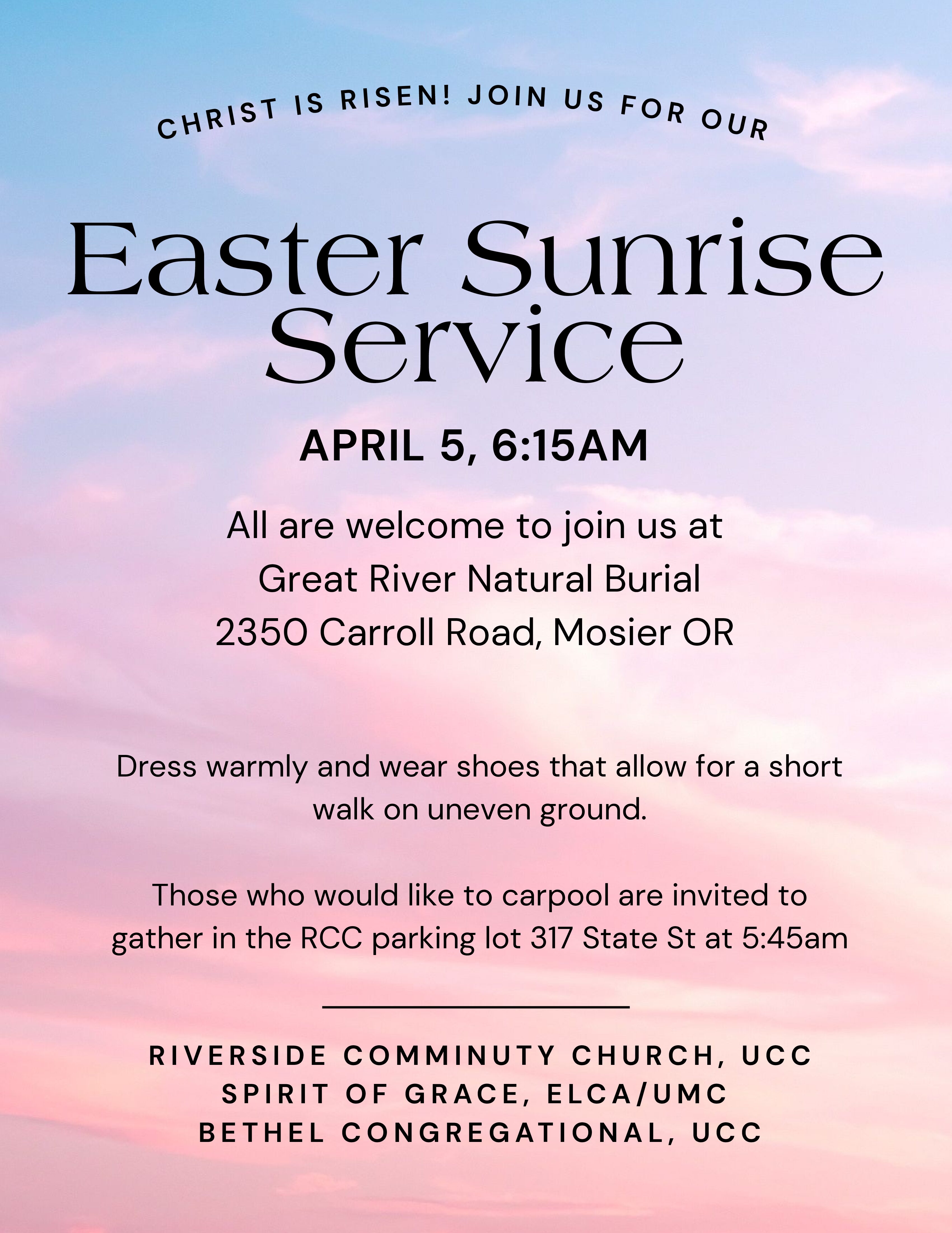 Events for April1st![]() 2:00 pm - 3:30 pm Riverside Bible StudyParkhurst Place ![]() 3:30 pm - 4:30 pm Contemplative Prayer GroupRuth Wells Room ![]() 4:00 pm - 5:00 pm Somos Inmigrantes | Action for our Immigrant Neighbors12th & May Streets ![]() 6:30 pm - 8:00 pm Chancel Choir RehearsalSanctuary Events for April2ndNo Events Events for April3rd![]() 4:30 pm - 5:30 pm Interfaith Day of Action for Ceasefire in GazaSalmon Fountain ![]() 7:00 pm - 8:00 pm Good Friday Candlelight ServiceSanctuary Events for April4thNo Events Events for April5th![]() 6:00 am - 7:00 am Sunrise Service![]() 10:30 am - 11:45 am Sunday Worship ServiceSanctuary Events for April6thNo Events Events for April7thNo Events Events for April8th![]() 2:00 pm - 3:30 pm Riverside Bible StudyParkhurst Place ![]() 3:30 pm - 4:30 pm Contemplative Prayer GroupRuth Wells Room ![]() 4:00 pm - 5:00 pm Somos Inmigrantes | Action for our Immigrant Neighbors12th & May Streets ![]() 6:30 pm - 8:00 pm Chancel Choir RehearsalSanctuary Events for April9thNo Events Events for April10th![]() 4:30 pm - 5:30 pm Interfaith Day of Action for Ceasefire in GazaSalmon Fountain ![]() 5:30 pm - 7:30 pm This Sweet EarthRiverview Room Events for April11thNo Events Events for April13thNo Events Events for April14thNo Events Events for April15th![]() 2:00 pm - 3:30 pm Riverside Bible StudyParkhurst Place ![]() 3:30 pm - 4:30 pm Contemplative Prayer GroupRuth Wells Room ![]() 4:00 pm - 5:00 pm Somos Inmigrantes | Action for our Immigrant Neighbors12th & May Streets ![]() 6:30 pm - 8:00 pm Chancel Choir RehearsalSanctuary Events for April16thNo Events Events for April17th![]() 4:30 pm - 5:30 pm Interfaith Day of Action for Ceasefire in GazaSalmon Fountain Events for April18th 9:00 am - 11:00 am Men’s GroupRiverview Room ![]() 10:00 am - 12:00 pm Writing for Self-Discovery 4-Week Workshop![]() 5:00 pm - 7:00 pm Pastor Vicky Stifter | Celebration of RetirementSanctuary Events for April19th![]() 10:30 am - 11:45 am Sunday Worship ServiceSanctuary 12:00 pm - 12:30 pm Special (brief) Congregational MeetingRiverview Room Events for April20thNo Events Events for April21stNo Events Events for April22nd![]() 2:00 pm - 3:30 pm Riverside Bible StudyParkhurst Place ![]() 3:30 pm - 4:30 pm Contemplative Prayer GroupRuth Wells Room ![]() 4:00 pm - 5:00 pm Somos Inmigrantes | Action for our Immigrant Neighbors12th & May Streets ![]() 6:30 pm - 8:00 pm Chancel Choir RehearsalSanctuary Events for April23rdNo Events Events for April24th![]() 4:30 pm - 5:30 pm Interfaith Day of Action for Ceasefire in GazaSalmon Fountain Events for April25thNo Events Events for April27thNo Events Events for April28thNo Events Events for April29th![]() 2:00 pm - 3:30 pm Riverside Bible StudyParkhurst Place ![]() 3:30 pm - 4:30 pm Contemplative Prayer GroupRuth Wells Room ![]() 4:00 pm - 5:00 pm Somos Inmigrantes | Action for our Immigrant Neighbors12th & May Streets ![]() 6:30 pm - 8:00 pm Chancel Choir RehearsalSanctuary Events for April30thNo Events |